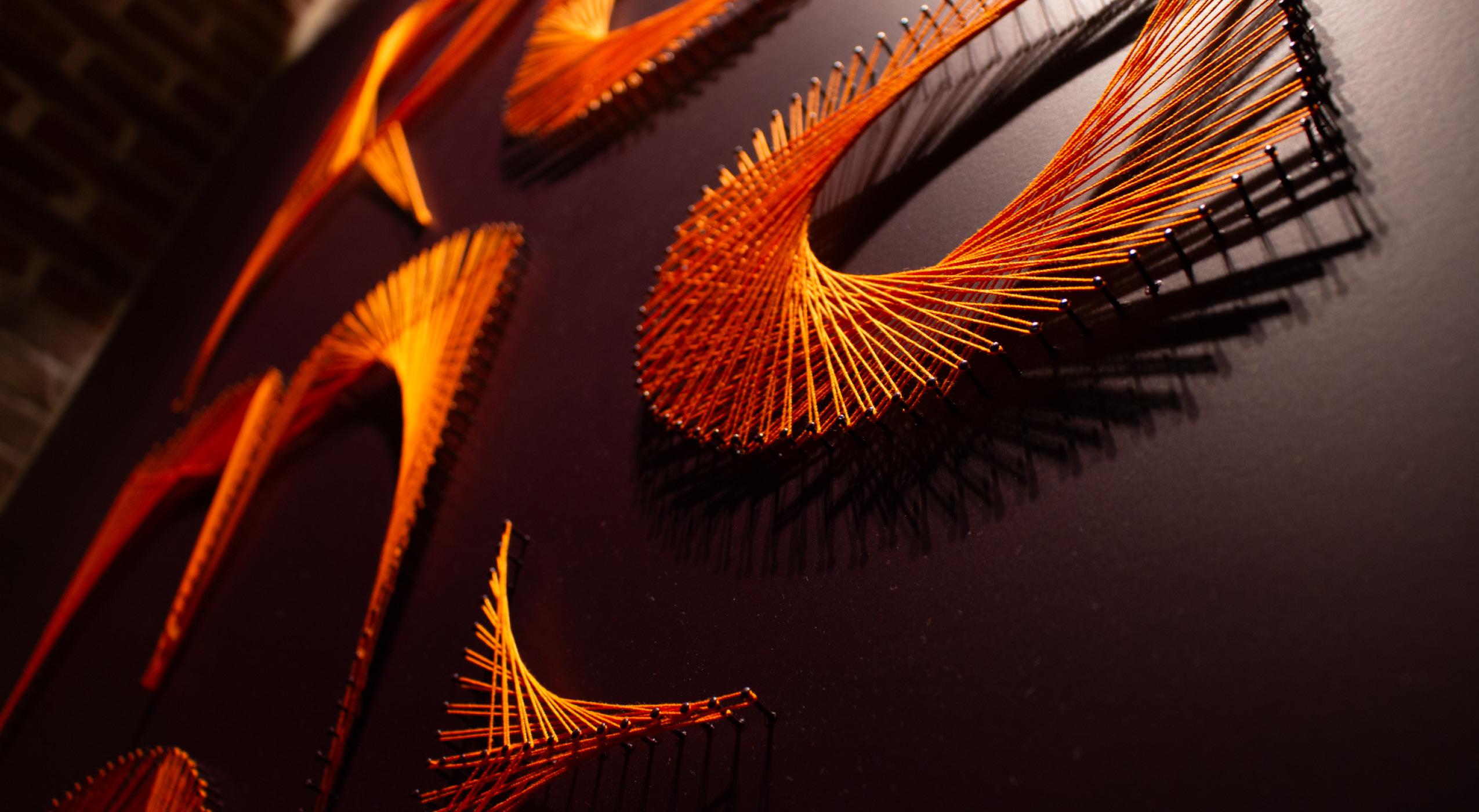 Het concept werd uitgewerkt in allerlei vormen en grafische vertalingen. Eentje daarvan waren twee kunstwerken waarbij de techniek van draadkunst werd gebruikt. We hebben hun logo en huisstijl geïnterpreteerd en daarbij twee kunstwerken gemaakt. Eentje met hun merkbeeld en de andere is een compositie van de letters van hun naam. Deze letters kregen een vorm door de beweging van de draad.