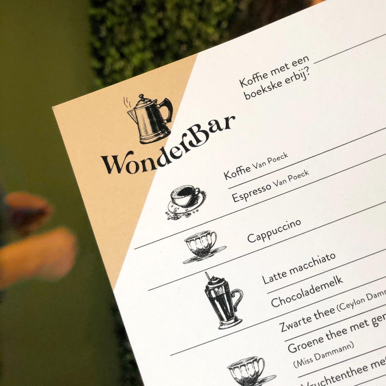 De baseline ‘Koffie met een boekske erbij?’ heeft een dubbele betekenis. Het gaat niet alleen over gastvriendelijkheid en gezelligheid, want ‘boekske’ betekent ook ‘tompoes’ in het Sint-Niklaas. Dat past helemaal in het concept, want in de Wonderbar kan je proeven van zelfgemaakte zoetigheden. Op de lancering waren er uiteraard lekkere ‘boekskes’ te proeven!
